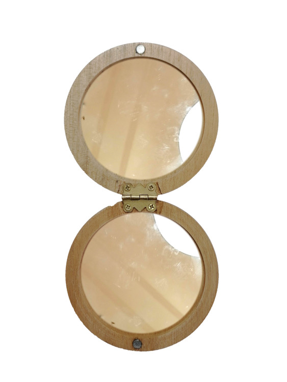 اندازه: قطر آینه وسط7 سانتی متر،قطر کلی آینه 10شانتی مترو ضخامت 2.5 سانتی متر